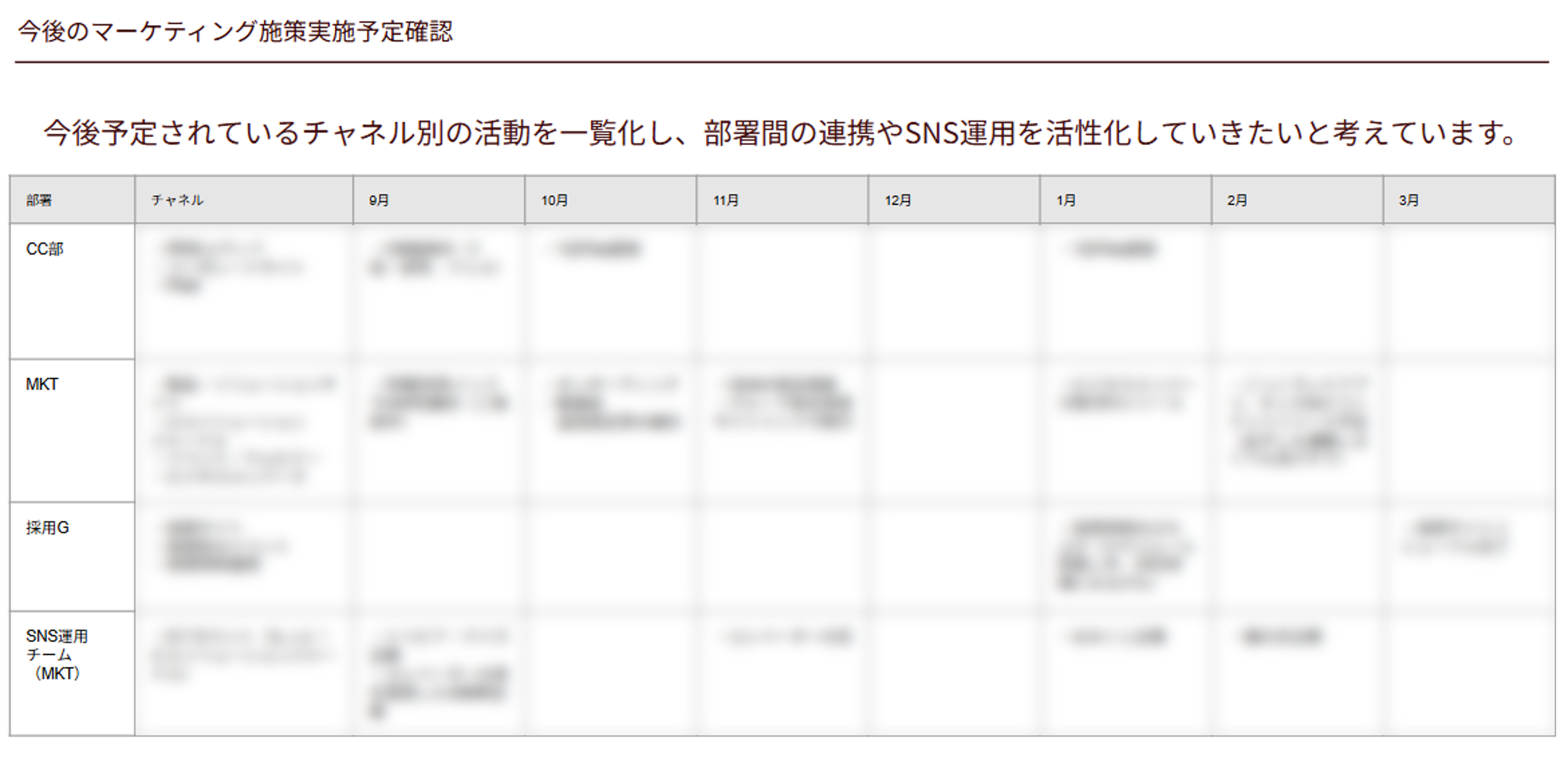 初年度となる2025年度は、これまで個別に活動していたコーポレート・コミュニケーション部門(以下、CC部)とマーケティング課(以下、MKT課)を繋ぐ定例会議を立ち上げ、ワンチームでマーケティングを推進する運営体制を構築しました。